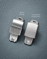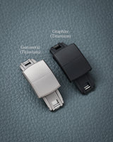 The CTS Deployant Clasp comes in 2 different metals (316L Steel and Titanium Grade 2), a total of 6 different colours & finishing, and in 3 widths for Steel (16mm, 18mm, 20mm), 2 widths for Titanium (16mm, 18mm). Weight difference between the two different metals:
