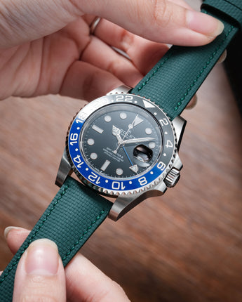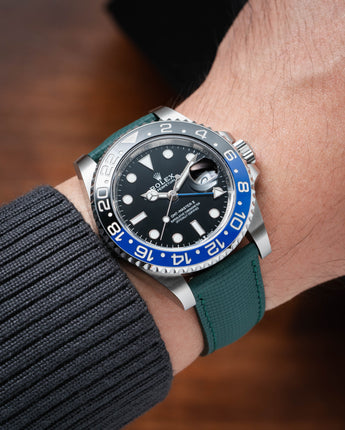 Introducing our innovative take on the Sailcloth strap—crafted from FKM rubber molded with a Sailcloth pattern. We’ve seamlessly blended the classic, rugged aesthetic of Sailcloth with the modern advantages of FKM rubber. The result is a strap that offers the iconic look of Sailcloth while providing enhanced durability and comfort.