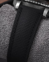 Introducing our innovative take on the Sailcloth strap—crafted from FKM rubber molded with a Sailcloth pattern. We’ve seamlessly blended the classic, rugged aesthetic of Sailcloth with the modern advantages of FKM rubber. The result is a strap that offers the iconic look of Sailcloth while providing enhanced durability and comfort.