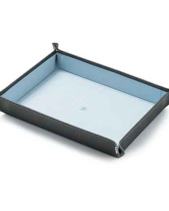 Our valet tray is made with Saffiano leather on the exterior for scratch-resistance, and Alcantara on the inside for a soft, luxurious feel. The middle is padded with sponge material for a plush cushion, while the sides are padded with a stiffener to give structure to the panels.
