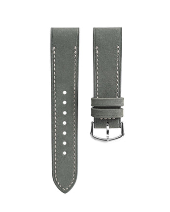 Nubuck has a soft touch with a short and even nap. It is supple and flexible from the start, but yet has just the right amount of structure. This strap is great if you are looking for something that's casual enough for all your daily activities, soft and comfortable to the touch, and an alternative to regular leather texture.