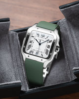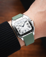 Our Rubber CTS Straps are equipped with the in-house D-Lock system, offering unmatched ease of use, exceptional security, and seamless compatibility with both Medium and Large Santos de Cartier models.