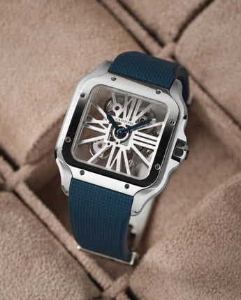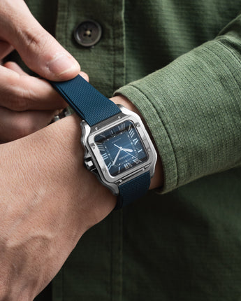 Our Rubber CTS Straps are equipped with the in-house D-Lock system, offering unmatched ease of use, exceptional security, and seamless compatibility with both Medium and Large Santos de Cartier models.