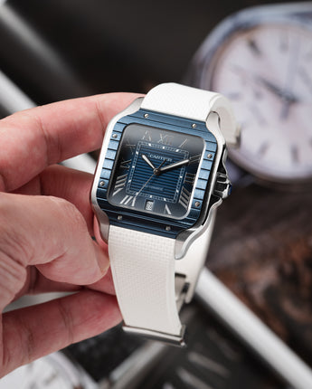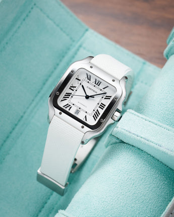 Our Rubber CTS Straps are equipped with the in-house D-Lock system, offering unmatched ease of use, exceptional security, and seamless compatibility with both Medium and Large Santos de Cartier models.