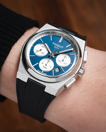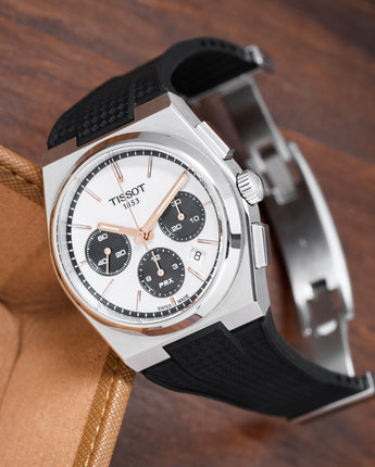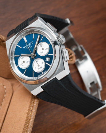 Do you own a Tissot PRX Chronograph and wish it came on a rubber strap, in addition to the metal bracelet? Well, wish no more! Pair your Tissot PRX Chronograph with a Cut-to-Size (CTS) FKM rubber strap for a totally new look and feel.
