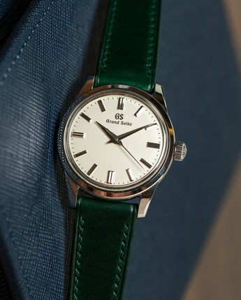 Shell Cordovan is the top tier leather available, before the category of exotics. It comes from the hind of a horse, and because the fibres are packed so densely together, the leather that results from that is incredibly durable. While Shell Cordovan is usually a stiff leather, when made in the Slim style, it is very flexible and a great companion to your dress watch.