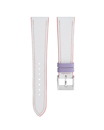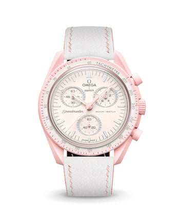 We've developed a total of 11 designs, curated to compliment each of the first 11 MoonSwatches, allowing the pairing to be seamless. These straps use the same leather and style from straps you love from Delugs, but with characteristics of two-tone accents in the stitching, edge paint and keepers.