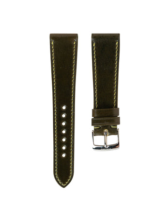 I love shell cordovan straps and have purchased others from Rios1931 and Fluco. In my opinion, the Delugs shell cordovan is the highest quality. It has a nice shiny sheen to it, which looks perfect of dressier watches. The olive green matches nicely with yellow gold watches.
