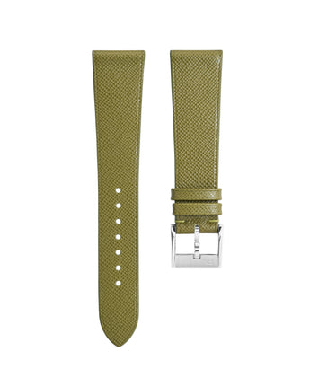 Excerpt from Strap Guide by Michael: "Who doesn’t love Saffiano leather? The texture adds a nice little element to your look, and it feels classic, yet modern on the wrist. For this combo I’ve chosen to pop the blue dial with this fantastic army green color! Will this pairing get you noticed at a dinner party? Perhaps. Will a stranger stop you in the street and tell you how awesome you are? Most likely."