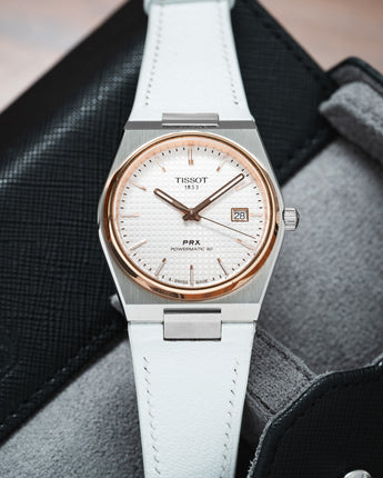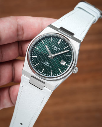 Looking to elevate the look and feel of your Tissot PRX? Our Tissot PRX straps are now available, with quick release spring bars fitted within the metal end links. You can easily switch between the bracelet and our straps. Made to fit either the Quartz or Automatic variants in 40mm.