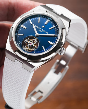 VCO owners rejoice! You can now find a range of rubber straps for the Vacheron Constantin Overseas in our signature Cut-to-Size style. Colourful straps for the VCO are no longer limited! These straps taper to 18mm at the buckle width, instead of the typical 20mm for the OEM VCO straps, for a more elegant taper that elevates the look of the VCO.