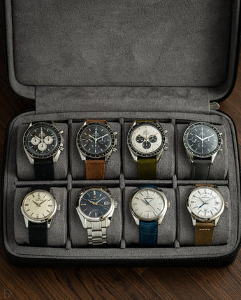 The Zip Box is sized to fit watches with case size up to 54mm (including the crown), so you can fit anything from your Rolex Datejust to Panerai inside this case. And did I already mention that the Zip Box pillows are compressible and designed to fit smaller wrists, so there's no need to worry about it stretching your strap or bracelet?