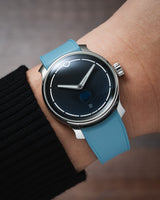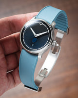 The CTS Curved Rubber strap in Baby Blue is a pleasant band for any watch in which I place it on. It was easy to cut and size to my wrist and the quick-release ability is convenient. The color is not overwhelming, but very complimentary.