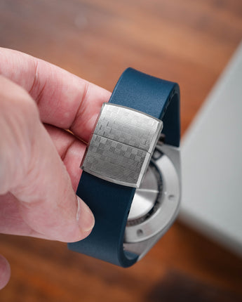 Our CTS Rubber Strap uses the CTS Deployant Clasp with a leaf spring mechanism that makes wearing the watch secure and convenient, and the Cut-to-Size feature ensures a perfect fit for all wrist sizes.