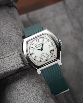 This iconic sports watch deserves more than just a plain rubber strap. Engineered specifically for the F.P. Journe Élégante, our Sailcloth Cut-to-Size (CTS) Rubber Strap offers a seamless, integrated fit that enhances the look of your timepiece.