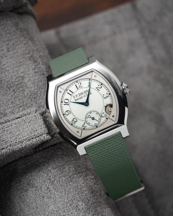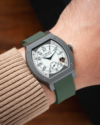This iconic sports watch deserves more than just a plain rubber strap. Engineered specifically for the F.P. Journe Élégante, our Sailcloth Cut-to-Size (CTS) Rubber Strap offers a seamless, integrated fit that enhances the look of your timepiece.
