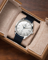 Form and function are both key in our design, which incorporates a satisfying tactile snap mechanism that shuts securely without the use of a magnet or closure strap, ensuring your watch stays safe and protected, but also keeping with a clean exterior aesthetic. It is also paired with a compressible cushion which can be squeezed to accommodate a range of wrist sizes. Surrounding your watch is a soft fabric surface to protect your watch and clasp from scratches.