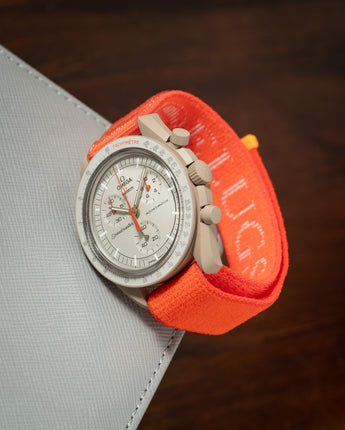 The orange delcro strap turned my Snoopy Moonswatch into an RM27-02 Rafael Nadal.