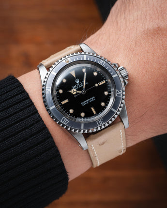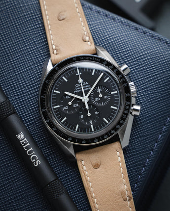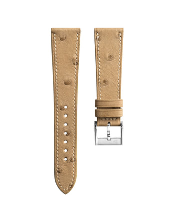 Supple and full of character, Ostrich Body leather is instantly recognisable by its naturally dotted texture. Its soft, pliable feel makes it especially comfortable on the wrist. If you're looking for an exotic leather with a distinct character from Alligator, this makes an excellent choice.