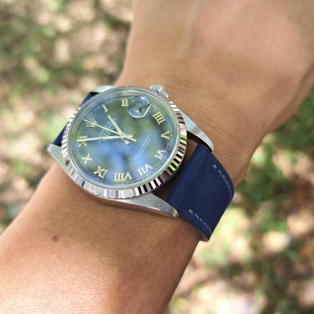 If you're searching for a Delugs strap to use with a vintage watch, be sure to check in with our Customer Service. Vintage watches sometimes use odd widths (17.5mm) or have shallow spring bar plots. This can increase the likelihood of slippage, even with the correct strap installed. Our trained staff will advise on the best course of action for a perfect fit.