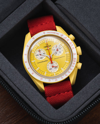 Put the red band on the Citizen Chronomaster AQ4020. The combination results in a super lightweight wear.