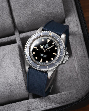 If you're searching for a Delugs strap to use with a vintage watch, be sure to check in with our Customer Service. Vintage watches sometimes use odd widths (17.5mm) or have shallow spring bar plots. This can increase the likelihood of slippage, even with the correct strap installed. Our trained staff will advise on the best course of action for a perfect fit.