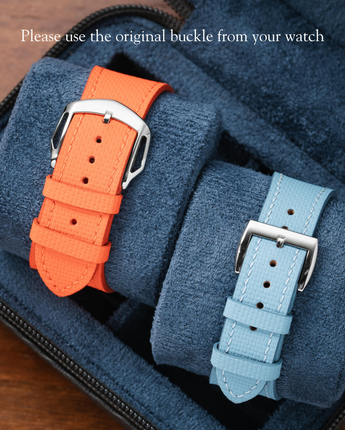 The straps match OEM taper dimensions so you can use your original buckle. In fact, we’ve chosen to sell these straps without buckles. For watch-specific designs like this, many collectors prefer to reuse OEM hardware, especially when it’s as distinctive and well-made as De Bethune’s.