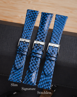 Our Salmon leather straps are crafted with folded edges by default to prevent scales from lifting, but some lifting may still happen over time.