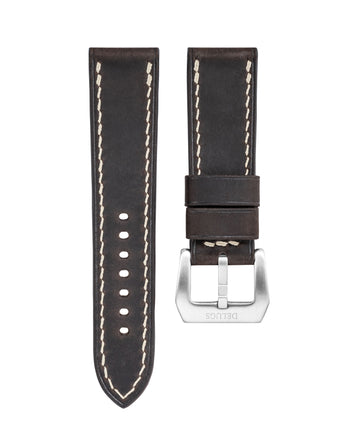 Crazy Horse leather is what you get when you mix Nubuck and Pueblo into one leather. You get the velvety, soft texture of Nubuck, with the varied look, smooth surface and great patina potential of Pueblo. Crazy Horse leather will accumulate scratches with daily use, with variations in the colour tones as you put the strap through its paces. This is what makes this leather so attractive - these marks will only improve the vintage look of the strap, allowing the beauty of the leather to be the real attraction.