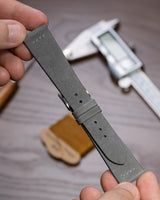 Nubuck has a soft touch with a short and even nap. It is supple and flexible from the start, but yet has just the right amount of structure. This strap is great if you are looking for something that's casual enough for all your daily activities, soft and comfortable to the touch, and an alternative to regular leather texture.