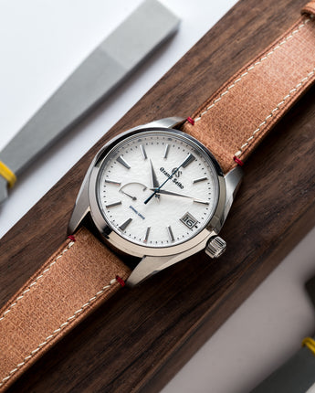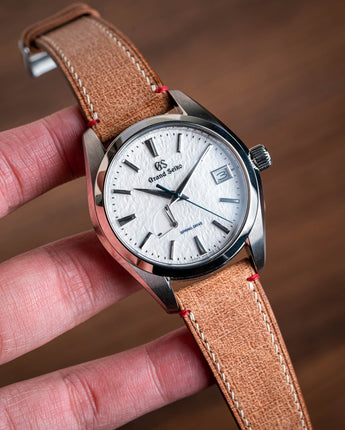 We just love the look of this Babele leather strap in Slim style. Babele leather is a veg-tanned leather that comes from Tempesti tannery in Italy. The look and feel of this leather article greatly resembles that of a table cloth or fabric. It has the same texture (slightly rough), same firmness (very soft) and same look as a piece of cloth. We think it might be the perfect casual strap for your weekends.