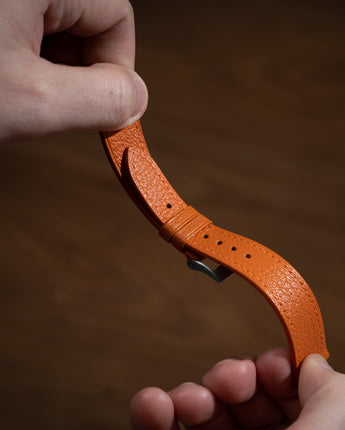 Absolutely perfect orange chevre bracelet. It goes perfectly with white dial dress watches, creating a more casual and sporty look. I highly recommend it!!