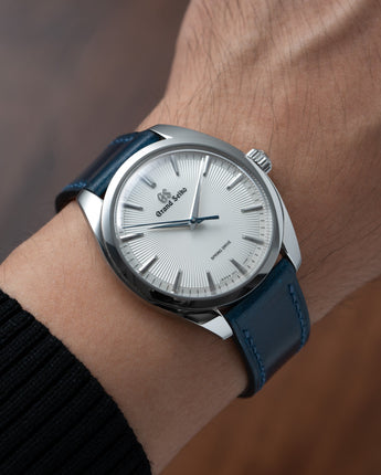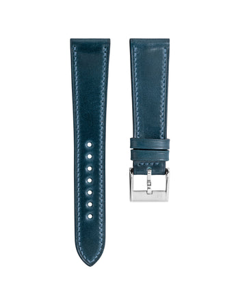 Excerpt from Strap Guide by Sam: "Between its lustrous finish, excellent durability, and deep coloring, I really like shell cordovan. The blue is a unique hue, and unlike other versions of “shell” straps I’ve encountered, this one does not feel overly dressy. I also appreciate the subtle blue-blue contrast stitch, it’s a fun touch."