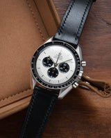 Shell Cordovan is the top tier leather available, before the category of exotics. It comes from the hind of a horse, and because the fibres are packed so densely together, the leather that results from that is incredibly durable. While Shell Cordovan is usually a stiff leather, when made in the Slim style, it is very flexible and a great companion to your dress watch.