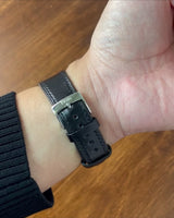 If you're searching for a Delugs strap to use with a vintage watch, be sure to check in with our Customer Service. Vintage watches sometimes use odd widths (17.5mm) or have shallow spring bar plots. This can increase the likelihood of slippage, even with the correct strap installed. Our trained staff will advise on the best course of action for a perfect fit.