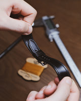 The Shell Cordovan we use comes from Shinki Hikaku tannery in Japan. Typical of most shell cordovan, it has a high gloss finish. Unique to Shinki Shell, the surface is extremely uniform and clean, with a beautiful depth of colour. This leather is so durable that it is likely to last as long as your mechanical timepiece!