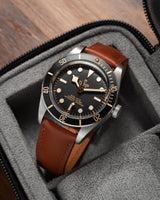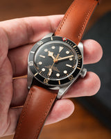 Baranil leather is soft and supple, with just the right firmness. It has a very smooth surface, with just a tiny bit of gloss. Closer inspection can reveal the beautiful grain on this leather. It has moderate scratch resistance which means you don't need to baby the strap. Small scratches can be buffed out with just some slight rubbing. This also means that Baranil is able to develop a beautiful patina that results in a slight darkening of the leather with use.