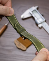 Waxy Slim strap is a rustic strap with a strong pull-up effect that gives character to the seemingly normal looking leather. It is a very supple strap with no break-in required, and has a rich colour and character that complements vintage watches really well. As a veg-tan leather, this leather will form a patina over time, with a unique sheen and antiqued look. The colours on offer are classic and pair well with most outfits and suits. Waxy leather comes from Badalassi Carlo tannery from Italy, which also makes many popular leather articles such as Pueblo and Minerva Box.