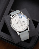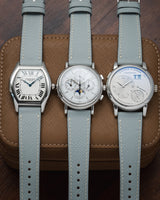 Excerpt from Strap Guide by Samuel: "I love the delicate texture of the Epsom leather, and the shade of grey complements the blue dial nicely. This particular leather comes from the Tanneries Du Puy in France, and they are well known for their high-quality leathers. You can easily dress up this strap, but it works perfectly with comfortable knitwear like the one I am wearing here. "