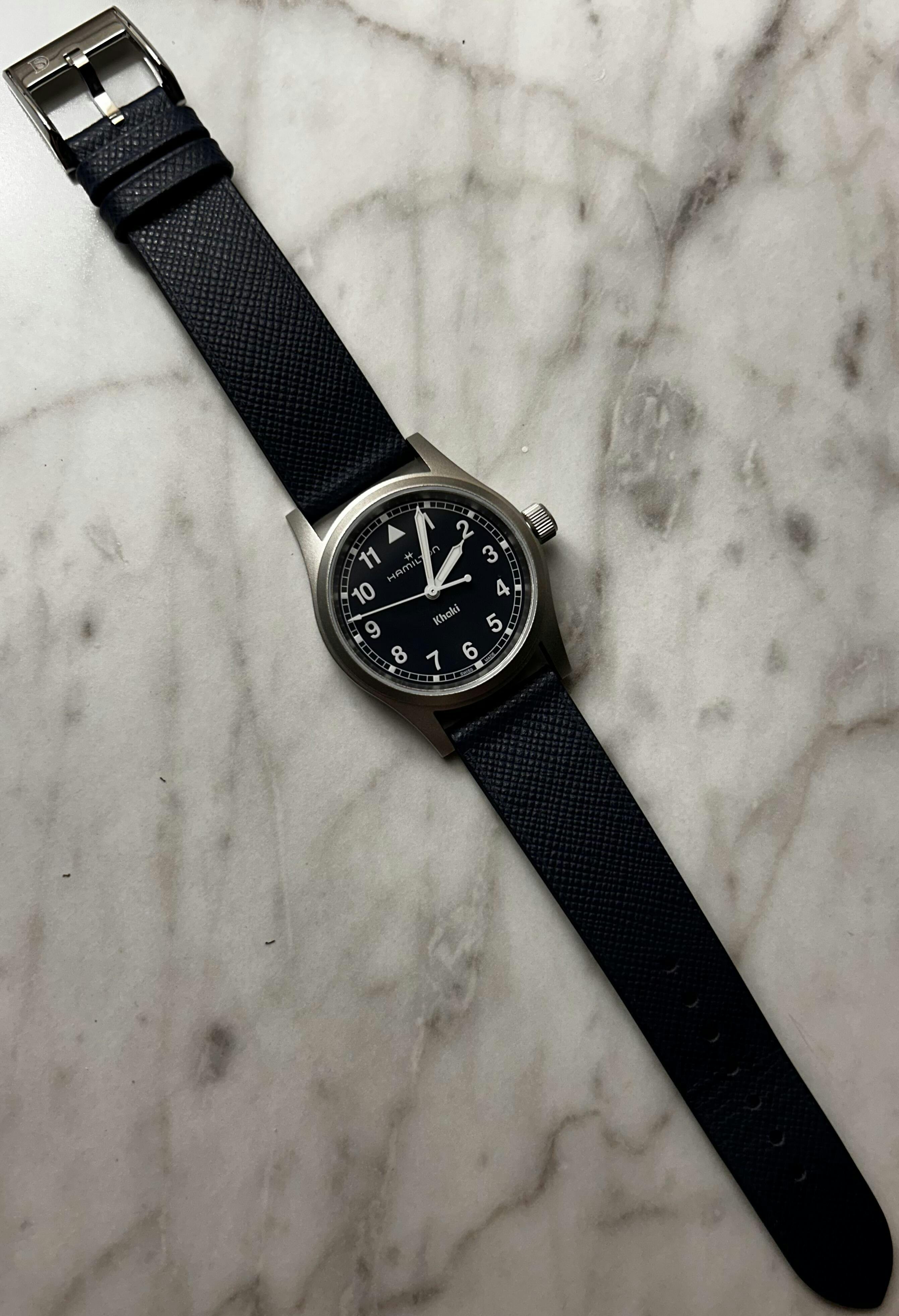 If you're searching for a Delugs strap to use with a vintage watch, be sure to check in with our Customer Service. Vintage watches sometimes use odd widths (17.5mm) or have shallow spring bar plots. This can increase the likelihood of slippage, even with the correct strap installed. Our trained staff will advise on the best course of action for a perfect fit.
