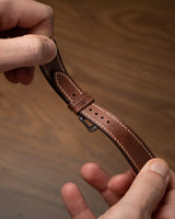 This strap will patina over time, and hence the surface texture and colour of the strap will change with use. Patina is a soft glow on the leather that develops through friction and wear. Patina is often said to enhance a product (it gets better with age) as the leather product develops a character that is an amalgamation of all the conditions that it's exposed to.