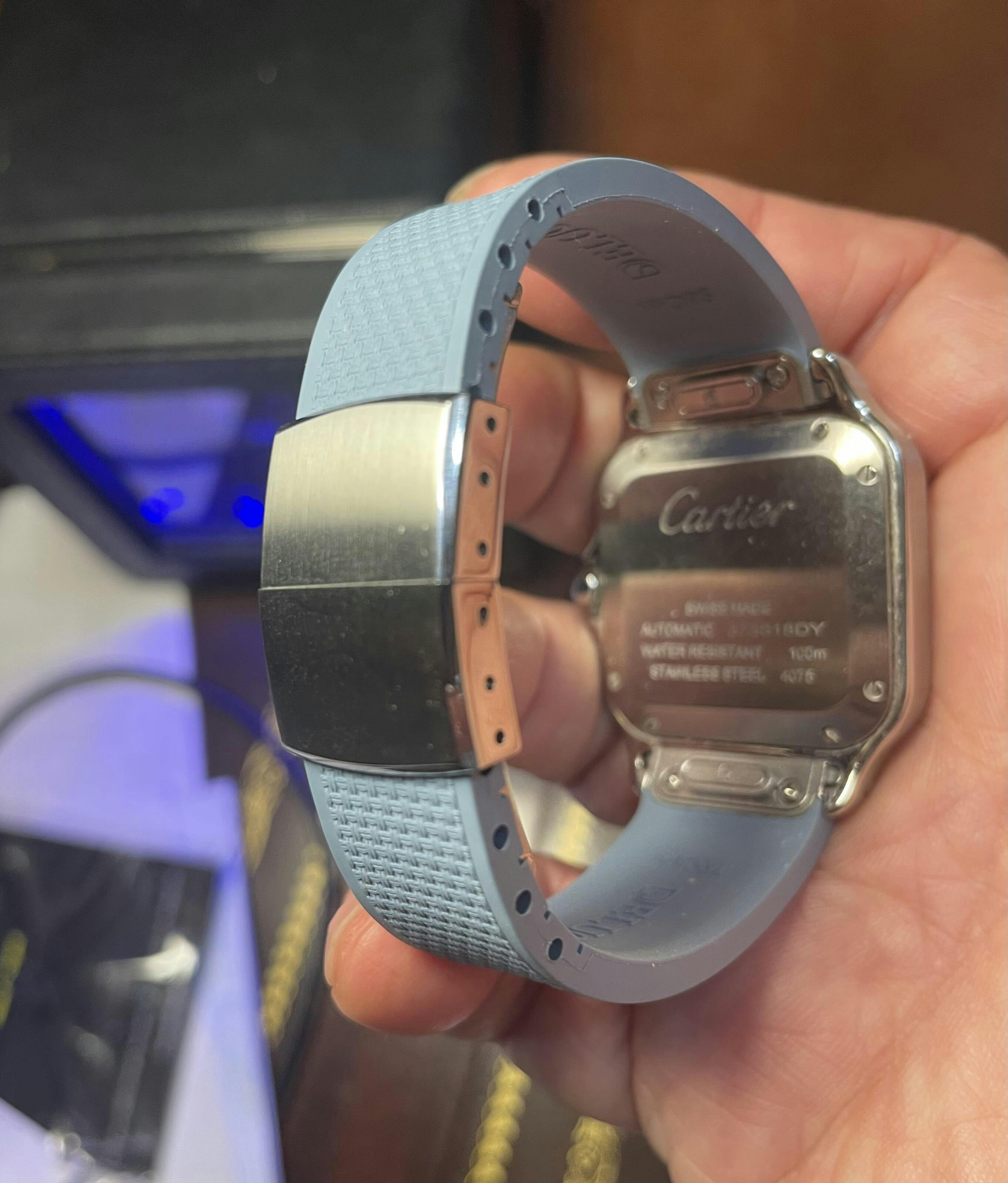 Our Rubber CTS Straps are equipped with the in-house D-Lock system, offering unmatched ease of use, exceptional security, and seamless compatibility with both Medium and Large Santos de Cartier models.
