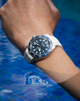 Customisable to fit your wrist perfectly and secured with a sleek leaf-spring deployant clasp, it is also available in a range of colours to suit your personal style. This strap is not only comfortable and durable, it is also truly waterproof and easy to maintain.