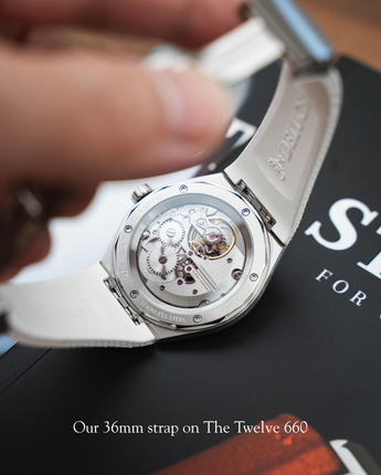 Please note that the strap for the 38mm Twelve and The Twelve 660 is the same as the strap for the 36mm. To be transparent, the fit on the 38mm isn’t perfectly flush with the flank of the case – there’s a minor gap where the strap meets the case that’s visible from the side.