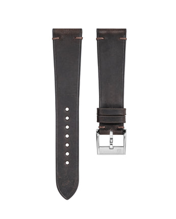 Crazy Horse leather is what you get when you mix Nubuck and Pueblo into one leather. You get the velvety, soft texture of Nubuck, with the varied look, smooth surface and great patina potential of Pueblo. Crazy Horse leather will accumulate scratches with daily use, with variations in the colour tones as you put the strap through its paces. This is what makes this leather so attractive - these marks will only improve the vintage look of the strap, allowing the beauty of the leather to be the real attraction.