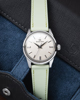 If you're searching for a Delugs strap to use with a vintage watch, be sure to check in with our Customer Service. Vintage watches sometimes use odd widths (17.5mm) or have shallow spring bar plots. This can increase the likelihood of slippage, even with the correct strap installed. Our trained staff will advise on the best course of action for a perfect fit.