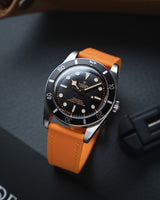 If you're searching for a Delugs strap to use with a vintage watch, be sure to check in with our Customer Service. Vintage watches sometimes use odd widths (17.5mm) or have shallow spring bar plots. This can increase the likelihood of slippage, even with the correct strap installed. Our trained staff will advise on the best course of action for a perfect fit.