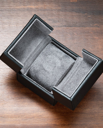Form and function are both key in our design, which incorporates a satisfying tactile snap mechanism that shuts securely without the use of a magnet or closure strap, ensuring your watch stays safe and protected, but also keeping with a clean exterior aesthetic. It is also paired with a compressible cushion which can be squeezed to accommodate a range of wrist sizes. Surrounding your watch is a soft fabric surface to protect your watch and clasp from scratches.
