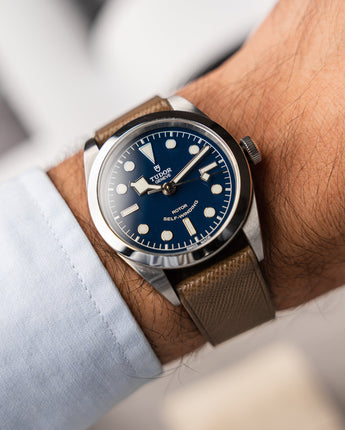 Saffiano leather is extremely popular amongst mainstream fashion. Even if you don't know its name, you probably have seen it before. It's an embossed pattern that has very pronounced and uniform grain. The scratch and water resistance of Saffiano is amongst the best there is. Paired in our Stitchless style, this is the casual strap you can keep on your wrist all year long.