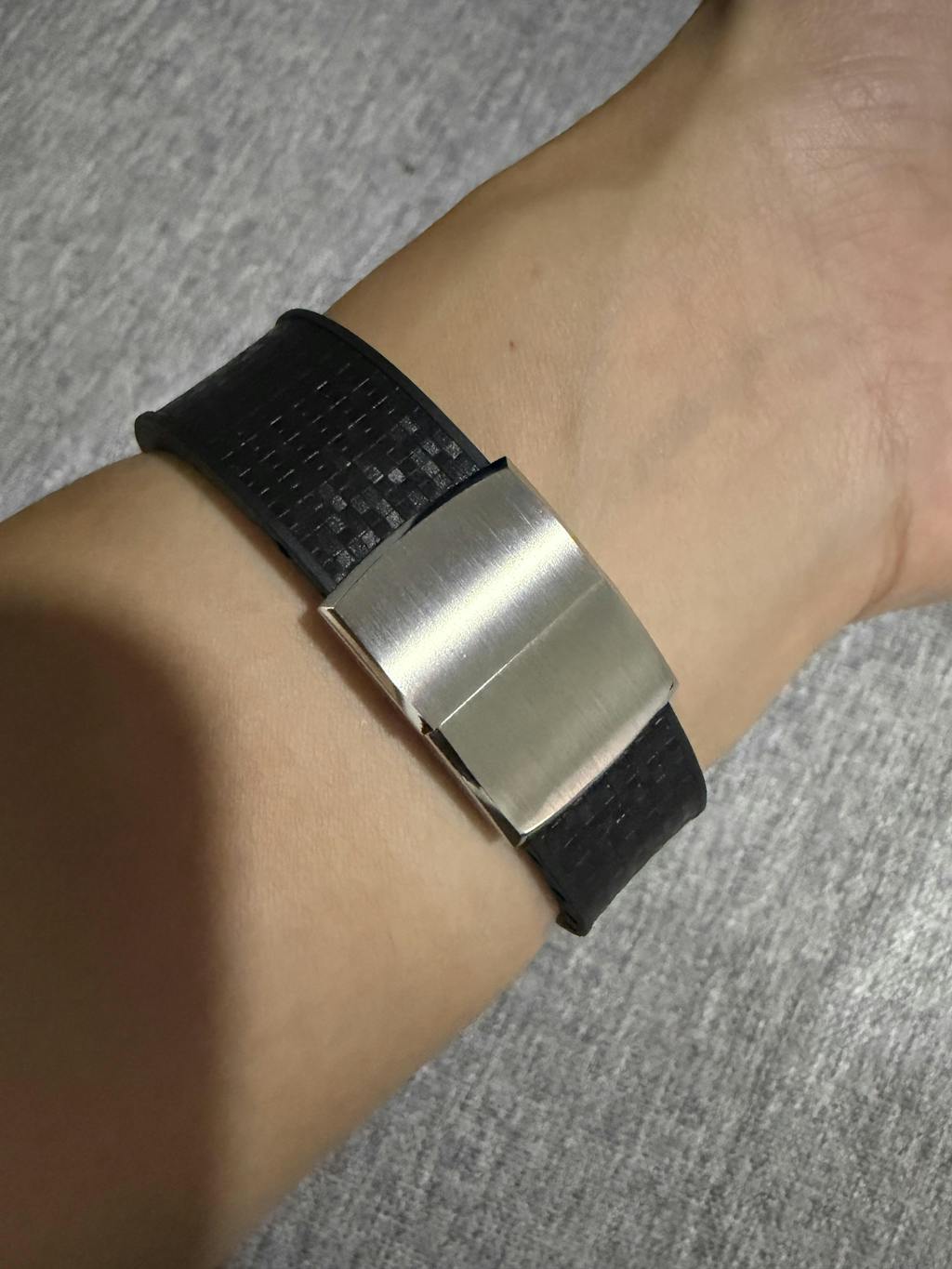 The strap is crafted with a rubber lining, for increased sweat resistance while worn on the wrist.